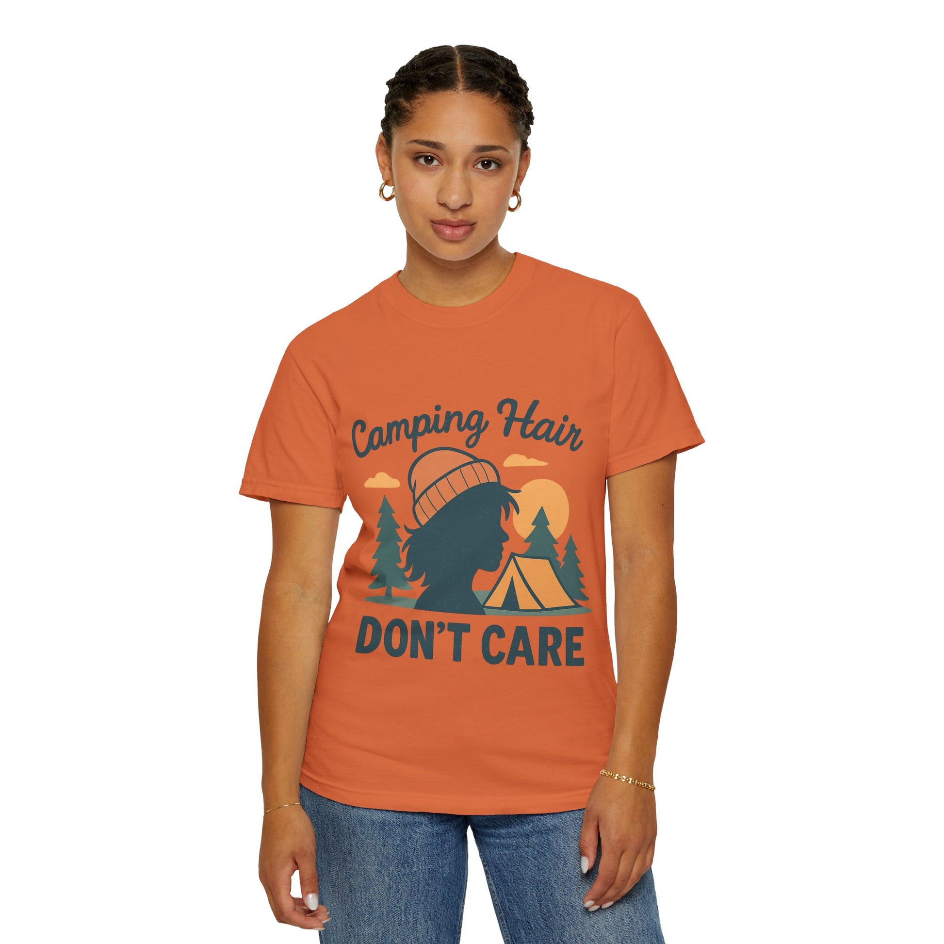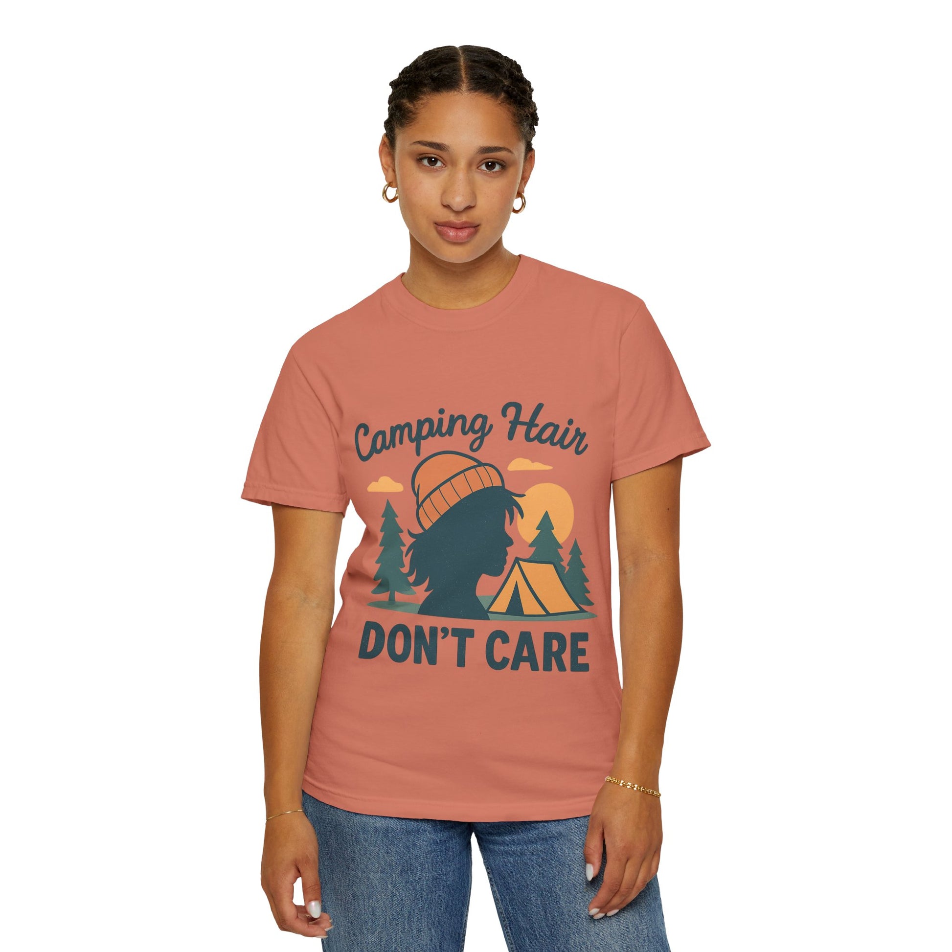 Camping Hair Don’t Care T-Shirt — Outdoor Camping Graphic Tee
