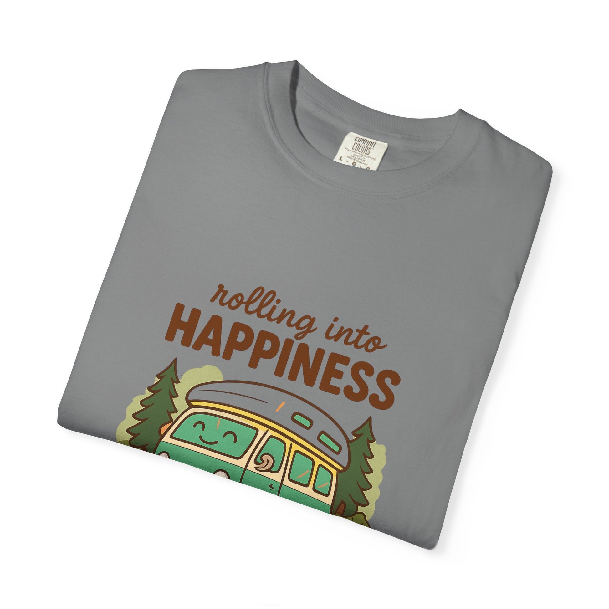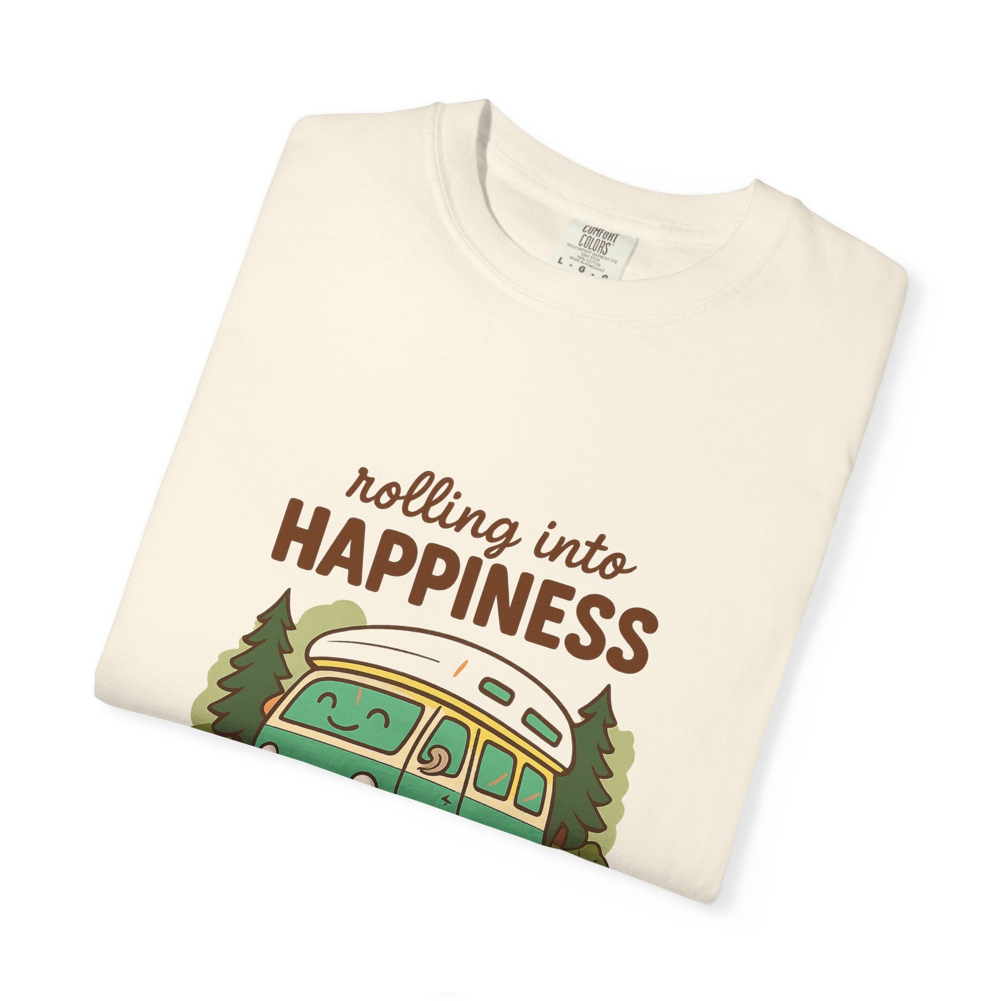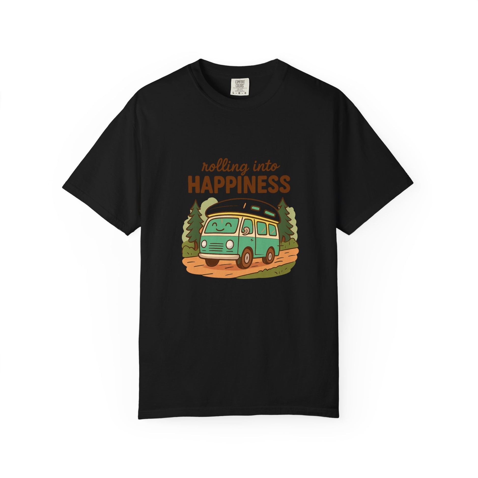 Rolling Into Happiness T-Shirt – Cute Van Life Shirt for Campers, Travelers & Adventure Lovers